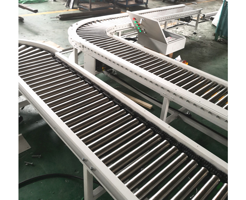 倍速鏈的輸送原理是利用倍速鏈條的增速功能,使倍速鏈條上的貨物