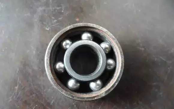 用手將軸承拿起,需要注意要向有滾珠的方向頂住,否則軸承容易散架。